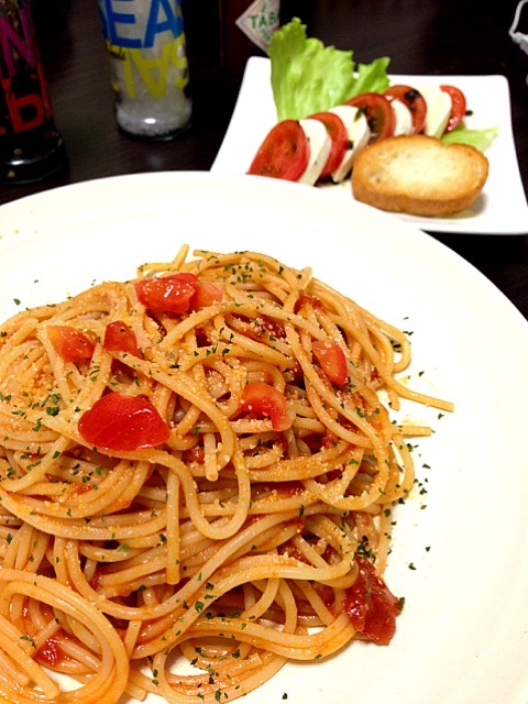 Gan Sur Twitter パスタ フレスカ英で夕食なう ジョジョ4部放映中なので娼婦風スパゲッティーことスパゲティパタネスカとモッツァレラチーズとトマトのカプレーゼを注文 相変わらずうんまぁぁぁい アニメの トニオさん回はいつ頃かしら